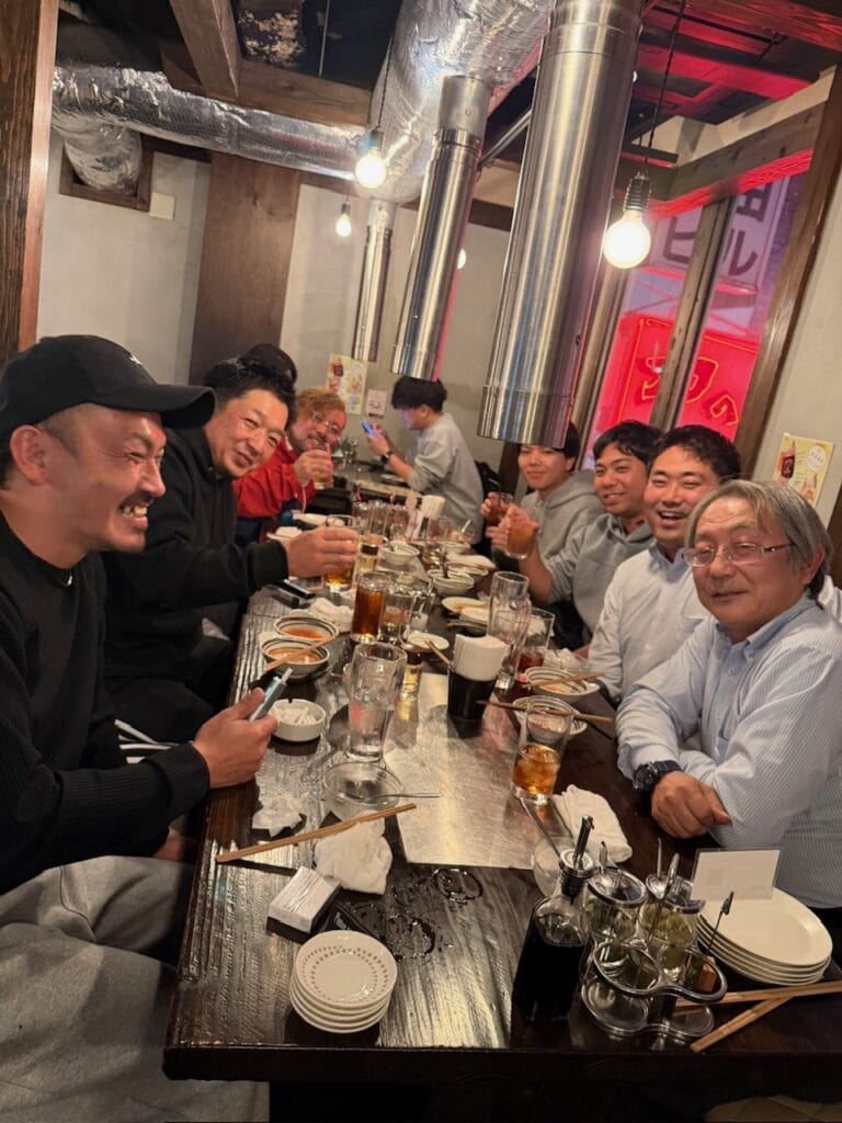 普段はオンラインでのやり取りが中心ですが、懇親会では、現地で進行しているプロジェクトの裏話や地域ならではの話題等、オンラインではなかなかうかがえない話で盛り上がりました。美味しい焼き肉を囲みながら、仕事のことだけでなく、プライベートな話題も交え、終始和やかな雰囲気でした。